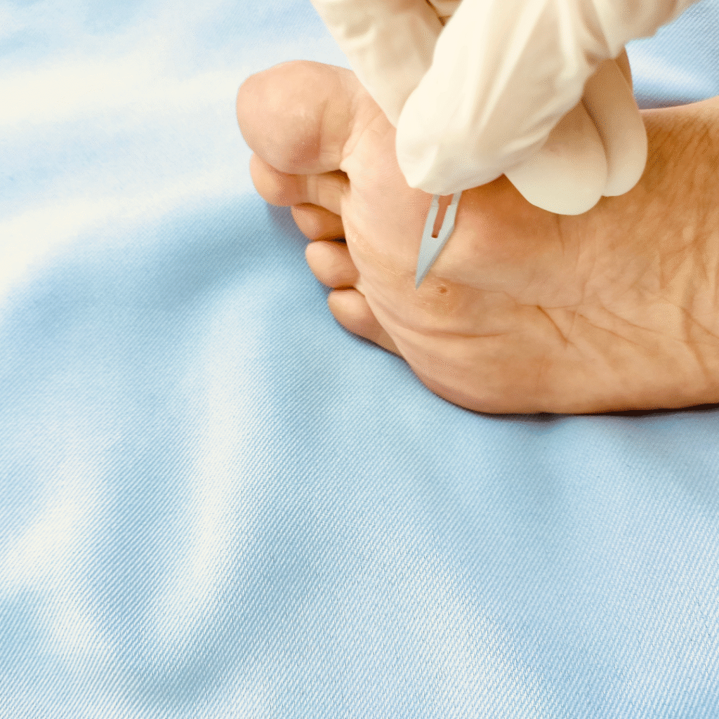 Surgical treatment – verruca excision, the verruca is excised under local anaesthetic